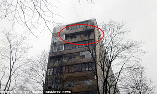 Người phụ nữ quyết định ôm con nhảy xuống đất từ tầng 8 để thoát thân. Ảnh: Bộ Khẩn cấp Nga-Một người phụ nữ ở trên bế con trai để tránh bị thương và nhảy xuống một căn hộ ở St.Petersburg từ độ cao 24 mét. Sau cú nhảy, cậu bé cảm thấy sợ hãi, nhưng không bị thương, ngoại trừ một vài vết thương do va chạm xuống đất, khuôn mặt người mẹ vẫn bê bết máu. Tin tức từ cơ quan ứng phó khẩn cấp của thành phố nói rằng tình huống khẩn cấp được hy vọng sẽ tồn tại. -Phải xảy ra hỏa hoạn ở chung cư. Ảnh: Bộ Khẩn cấp Nga -Trước đó, cô quyết định nhảy xuống đất từ tầng 8 vì không có lối thoát và bị ngạt thở. Một nhân chứng cho biết, người bạn trai ở chung cư đã nhờ người ở tầng dưới giúp phá cửa nhưng cánh cửa kim loại khiến họ bất lực.