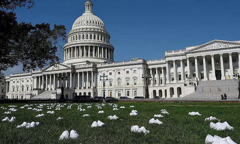 164 đôi giày trắng xếp hàng bên ngoài Tòa nhà Quốc hội Hoa Kỳ tại Washington vào ngày 21 tháng 7. Ảnh: Agence France-Presse .