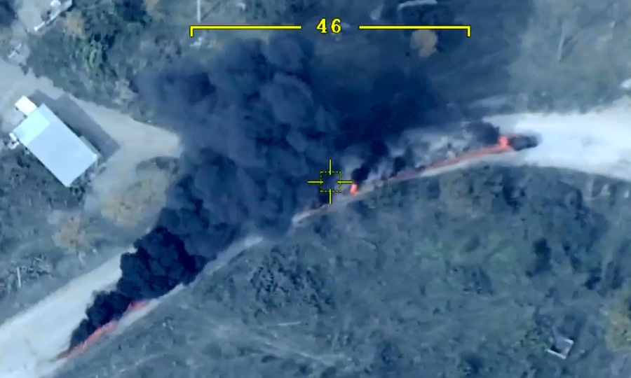 Má»™t máy bay không ngưá»i lái đã tấn công nghi phạm mang Harutyunyan. Video: Haqqin.