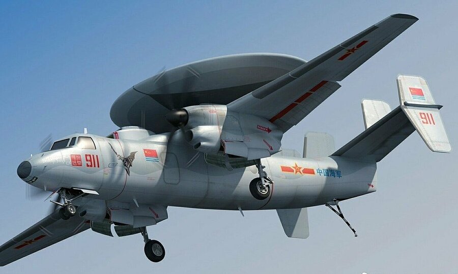 Đầu tuần này, mạng xã hội Trung Quốc chia sẻ hình ảnh một chiếc máy bay với radar hình tròn và 4 đuôi thẳng đứng trên thân. Nguồn tin quân sự Trung Quốc khẳng định đây là máy bay cảnh báo sớm nội địa KJ-600 được chế tạo cho tàu sân bay, đang được hoàn thiện những khâu cuối cùng.