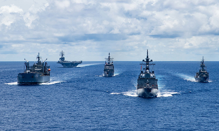 Và o ngà y 21 tháng 7, các tà u chiến Úc, Mỹ và Nháºt Bản đã tiến hà nh táºp tráºn trên biển Philippines. Ảnh: Hải quân Hoa Kỳ.
