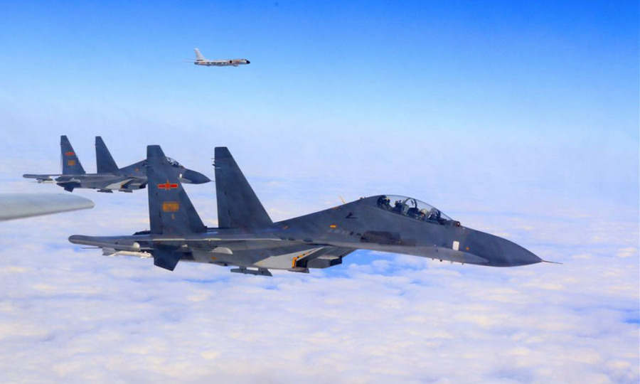 Phi đội J-11 ở eo biển Trung Quốc ở eo biển Đài Loan vào năm 2018. Ảnh: PLAAF .